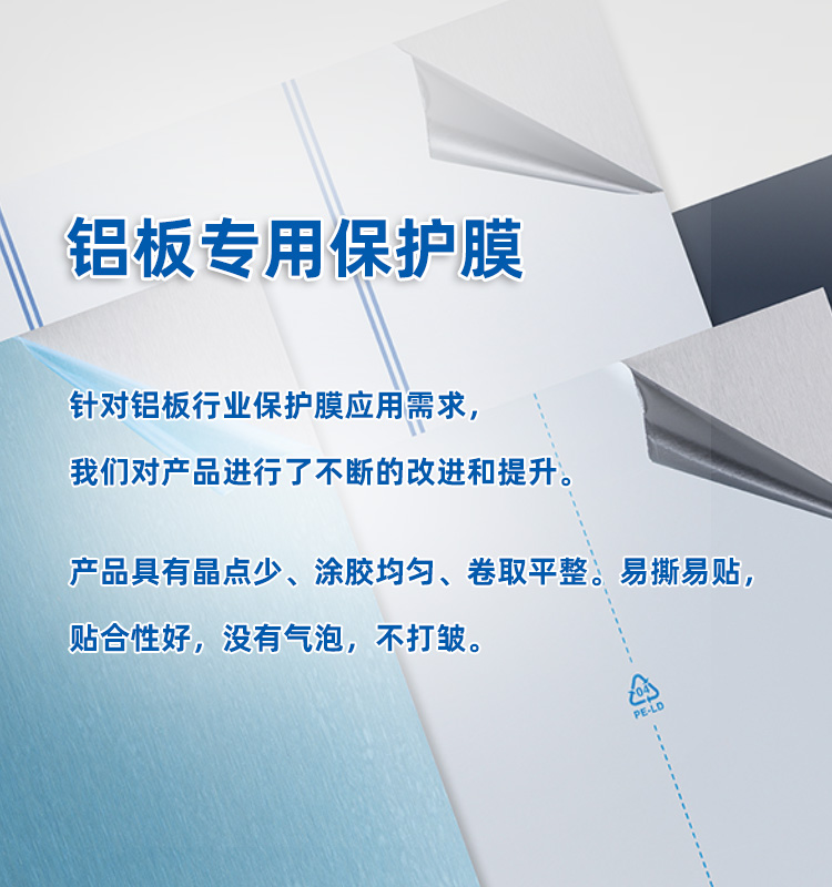 配合行業(yè)內(nèi)先進(jìn)的生產(chǎn)技術(shù)力量,為設(shè)施完備的保護(hù)膜生產(chǎn)基地,可巧妙地為您解決各種復(fù)雜的難題,為您的產(chǎn)品提供符合高水準(zhǔn)的保護(hù)。公司推行科學(xué)的管理模式,建立起有效的運(yùn)營系統(tǒng),以研發(fā)制造為核心,打造表面保護(hù)的整體解決方案,產(chǎn)品應(yīng)用于彩鋼板、鋁材、不銹鋼、塑料、電子產(chǎn)品、家電用品、陶瓷、馬賽克、家具、玻璃、地毯以及各類建筑、裝飾材料等行業(yè),具有易撕易貼、膠面不轉(zhuǎn)移、剝離無殘膠等特點(diǎn),得到廣大客戶的一致好評。特別是在不銹鋼保護(hù)膜、鋁板保護(hù)膜領(lǐng)域不斷開拓追尋,逐步成就核心技術(shù)優(yōu)勢,市場占有率節(jié)節(jié)攀升。